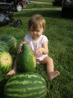 Our watermelon harvest exceeded our greatest hopes! We’ve really made up after the great watermelon tragedy of last summer. We got about 22 out this week and still have about 8 yet to be picked. The smaller one’s weren’t much to write home about, but the large ones were red, sweet and of course juicy! Thus the “writing home about” them.