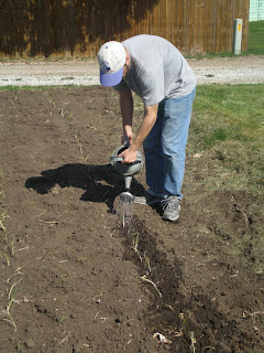 Our garden is coming along pretty well. We may have bit off a little more than we can chew this year though (literally in some cases). We’re learning some hard lessons about the farming life. Sadly our sweet corn, which looked to be so promising a few weeks ago, has been robbed of it’s precious nitrogen due to the neglect and ignorance of it’s proud planters. Apparently it likes to be planted a little deeper and doesn’t do well with weeds. After some advise from a local farmer, we spent a couple hours getting all of those out the other night, then fertilized, only to find that the storm that came threw tonight did quite a number on our sweet baby sweet corn. Phil found it all blown over. Below is how he came home tonight after an attempt to replant some of it.